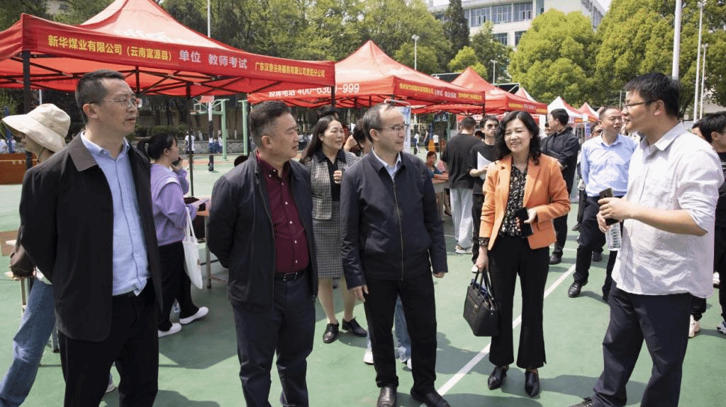 贵阳市人大常委会二级巡视员袁云龙率队到招聘会现场,安顺市人力资源和社会保障局相关领导,安顺学院党委书记罗荣彬,安顺学院党委委员、副校长殷红敏亲临招聘会现场,并与企业和参会毕业生进行了亲切的交流。