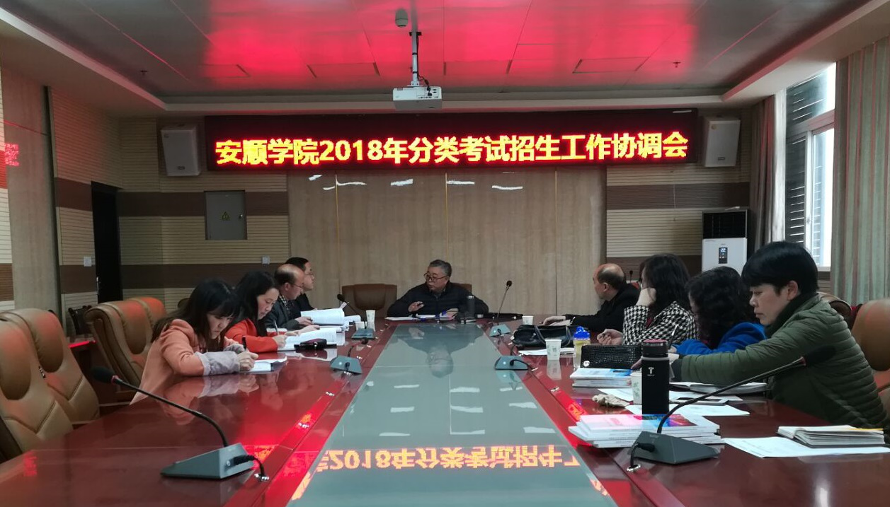 3月6日下午,安顺学院在学校特教大楼六楼会议室召开2018年分类考试招生协调会。安顺学院党委委员、副院长令狐荣涛,招就处、教务处、学生处、纪委监察室、后勤处等相关职能部门主要负责人,人文学院、外国语学院、旅游学院党政主要负责人参加会议。会议由令狐荣涛副院长主持。