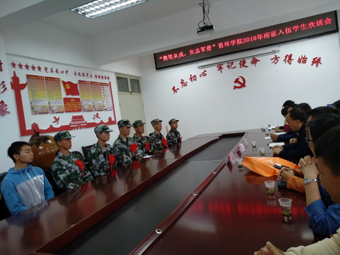 9月13日下午,资源与环境工程学院召开座谈会欢送2018年应征入伍学生。资环学院院领导班子、2018年应征入伍学生、2018年应征入伍学生班级班主任、团总支学生科及办公室相关老师、学生代表参加。