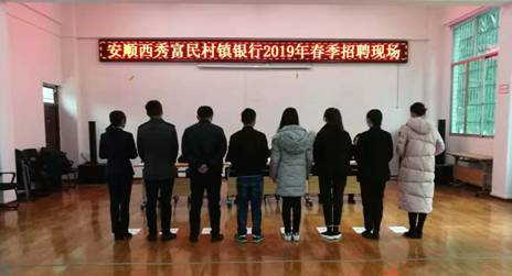 3月5日,在我校招聘大厅举办安顺西秀富民村镇银行2019年春季招聘会。经过前期的宣传和政策讲解,吸引了众多毕业生积极参加此次招聘活动。经过一系列的招聘面试笔试,我校少数毕业生与安顺西秀富民村镇银行初步达成了就业意向。