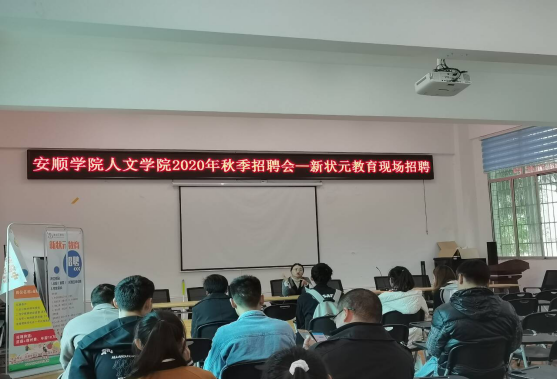 为了解决毕业生就业难、创业难等问题,2020年11月6日下午我院联合安顺市新状元教育机构在电教一楼招聘大厅举办现场就业招聘会。我院相关就业指导教师、安顺市新状元教育机构负责人及我院各专业50余名学生参加招聘会活动。