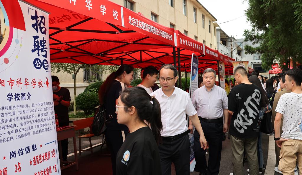 刘俊作讲话。他指出,贵阳深入学习贯彻习近平总书记关于就业创业工作的重要指示和视察贵州的重要讲话精神,牢牢抓住国发2号文件的重大机遇,深入贯彻落实党中央“六保六稳”的重要指示,按照省委省政府的部署和要求,推动在黔高校毕业生到贵阳工作,促进高校毕业生就业。贵阳市各级各部门坚决贯彻落实党中央、省委省政府的要求,把就业放在更加重要的位置,积极为校企合作搭台,努力为高校毕业生站台,千方百计帮助毕业生就业,为全省会提供人才支持。今天,贵阳文旅局、大数据局、卫健厅、工信局、教育局等7个部门为大家带来了46个单位,安顺市人社局邀请了30家企业,共提供703个岗位,希望同学们抓住机会,认真选择岗位,扎根贵阳,实现抱负,为贵阳的发展做出应有的贡献,谱写人生的新篇章。