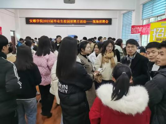 本次招聘会得到了安顺市人力资源和社会保障局、安顺市委军民融合办、安顺高新技术产业开发区管理委员会、安顺经济技术开发区劳动和社会保障局等政府部门的大力支持。安顺学院招就处将按照学校的就业工作安排,有计划、有目标地开展好2023届毕业生就业工作,抓住校园招聘会的机会,为毕业生做好就业服务工作。(文图:赵虎/滕飞龙)