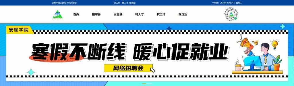 我校将于2025年1月1日启动网络招聘会,2025年1月1日—2025年1月31日举办“寒假不断线暖心促就业”网络招聘会,现将有关事宜通知如下: